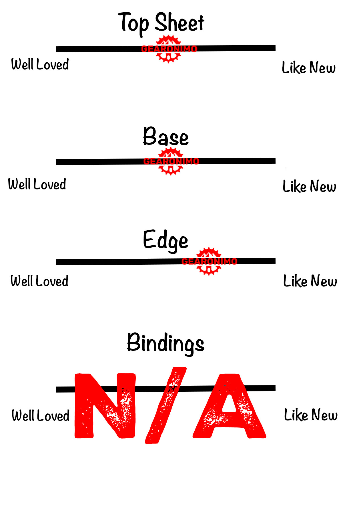 This board has seen some days on the mountain and has signs of use. Overall, there are some signs of use from normal wear, but it's ready for much more.