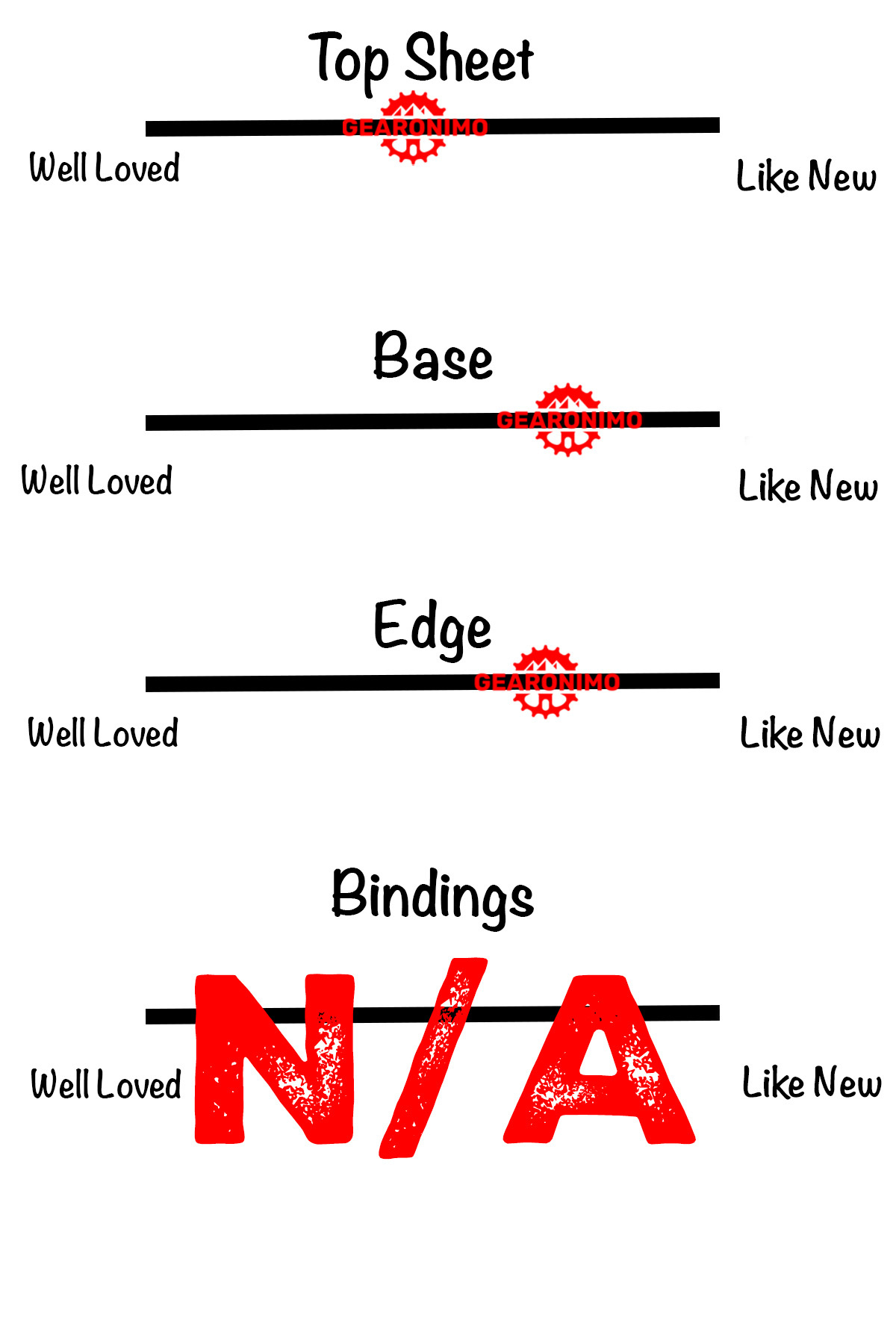 ** The skis/snowboards shown in the photos are the same make, model, and color that you will receive; however, the exact condition may vary. All skis/snowboards for sale are in skiable condition and still have life left in them, but they may or may not exhibit cosmetic damage (repaired or unrepaired) from normal wear and tear. The bases may also show signs of use, including scratches and/or repaired P-tex work. We do our best to represent the condition of our inventory accurately, but it can be difficult to show every detail. As a result, the skis/snowboards you receive may vary slightly in condition from the photographs pictured. Please feel free to reach out with any questions or concerns **