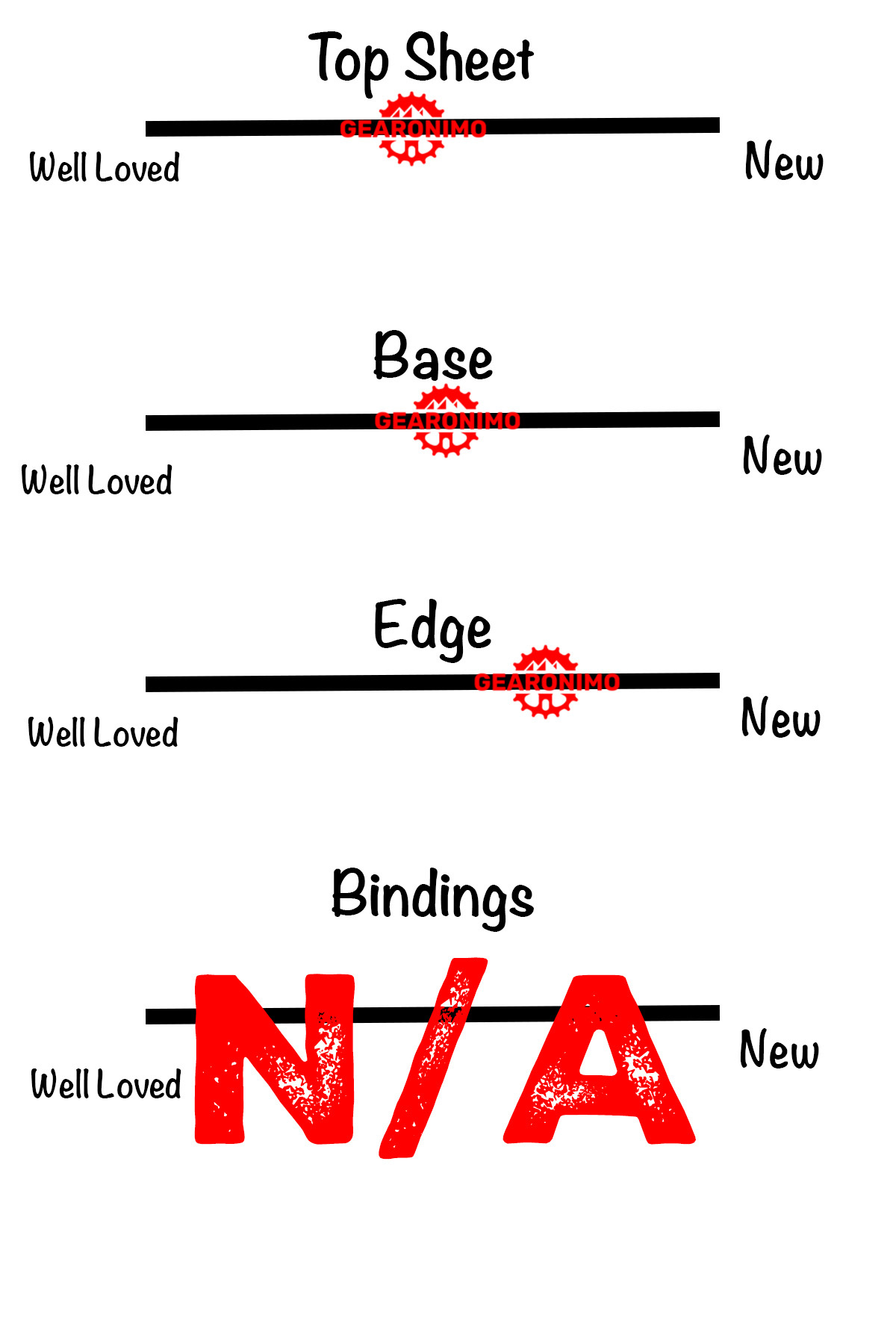This board shows some normal wear and tear, with one deeper gouge by the edge that has been filled.