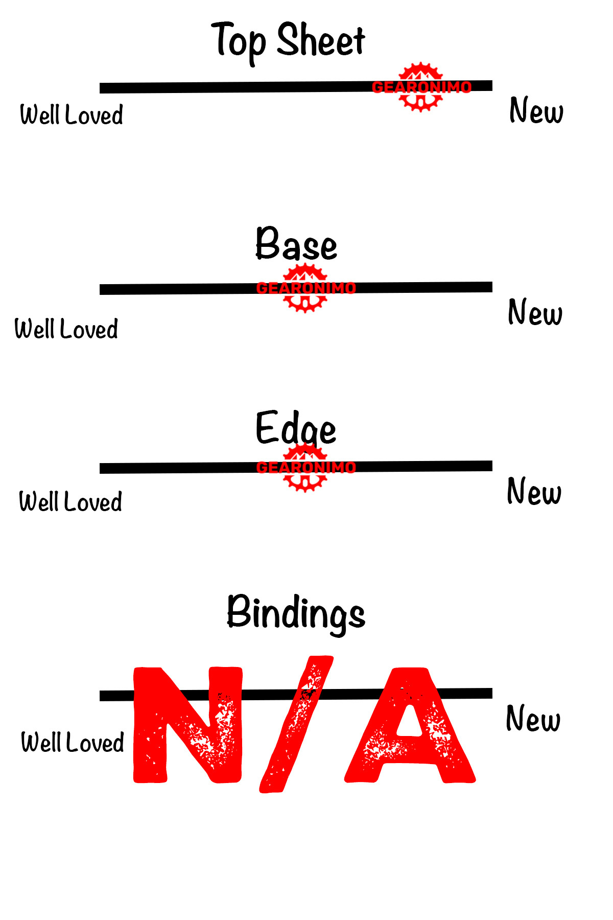 This board is in awesome condition with some minor base scratches from regular wear. It is ready for some fresh skin tracks.